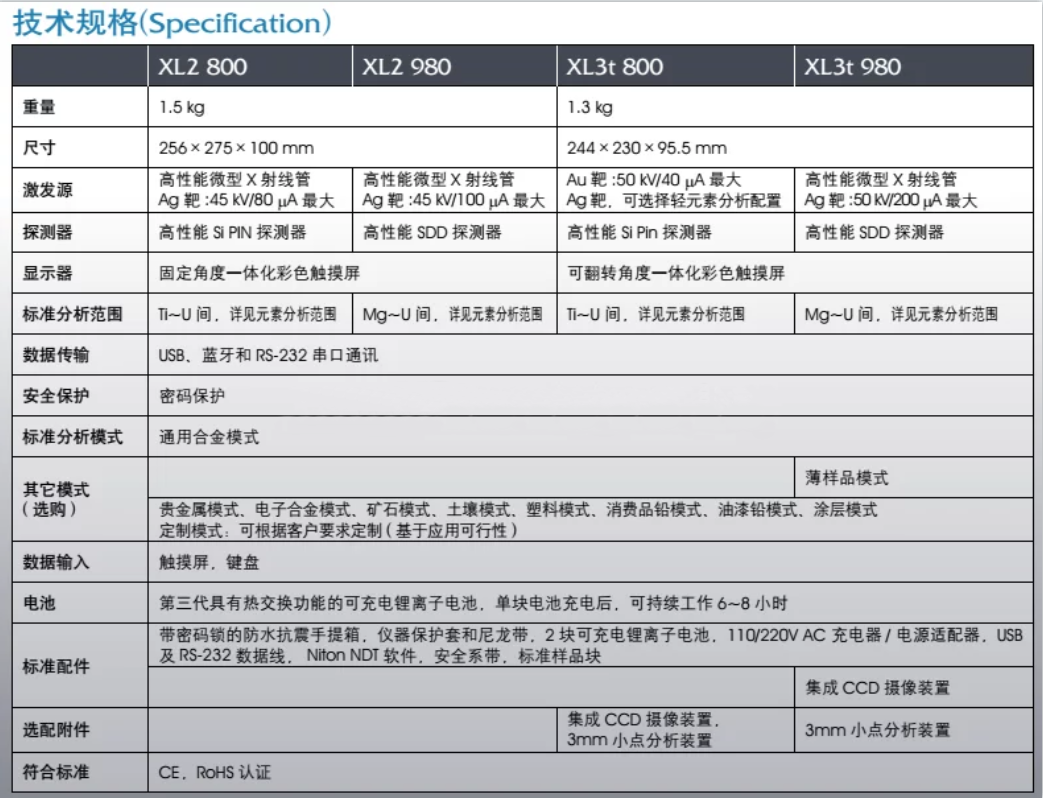 檢測模式:貴金屬、礦石、合金、塑料、土壤、涂層、消費品鉛、油漆鉛等