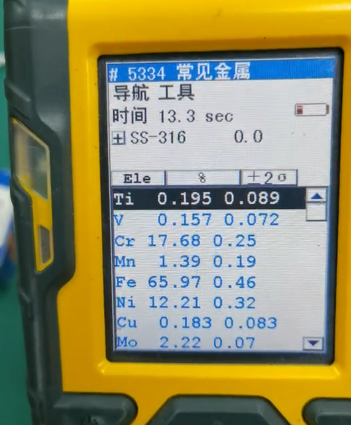 例如,“%”很容易理解,就是這個(gè)元素占這個(gè)樣品所檢測(cè)出的元素含量成分的百分之多少,比如像這個(gè)316樣品,鈦(Ti)的含量就是百分之0.195。