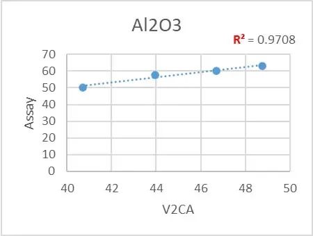 以下為成品中的氧化鋁含量%的檢測結(jié)果對比: