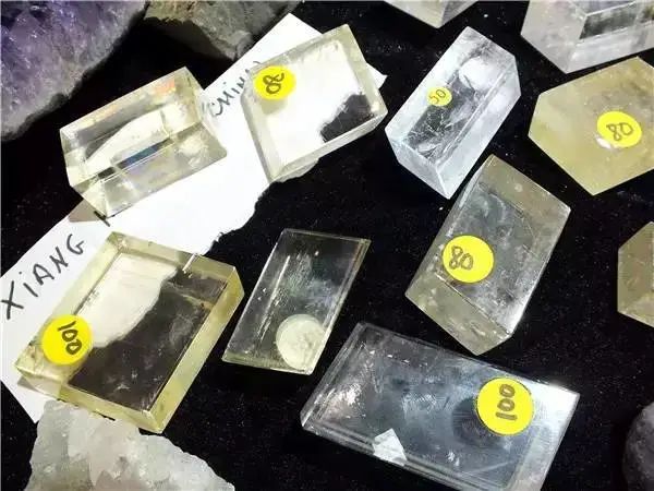 再比如冰洲石,它有三個方向的完全解理,通常會沿著解理面開裂形成一系列斜平行六面體,即非常完美的菱形塊體,這是它十分獨特的性質(zhì)。