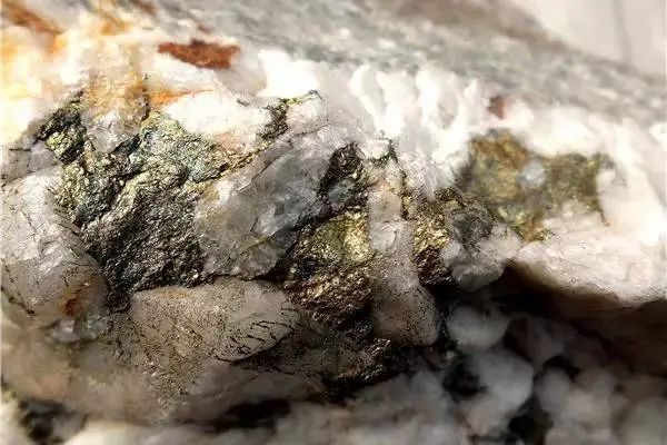 產(chǎn)在石英中間的黃銅礦