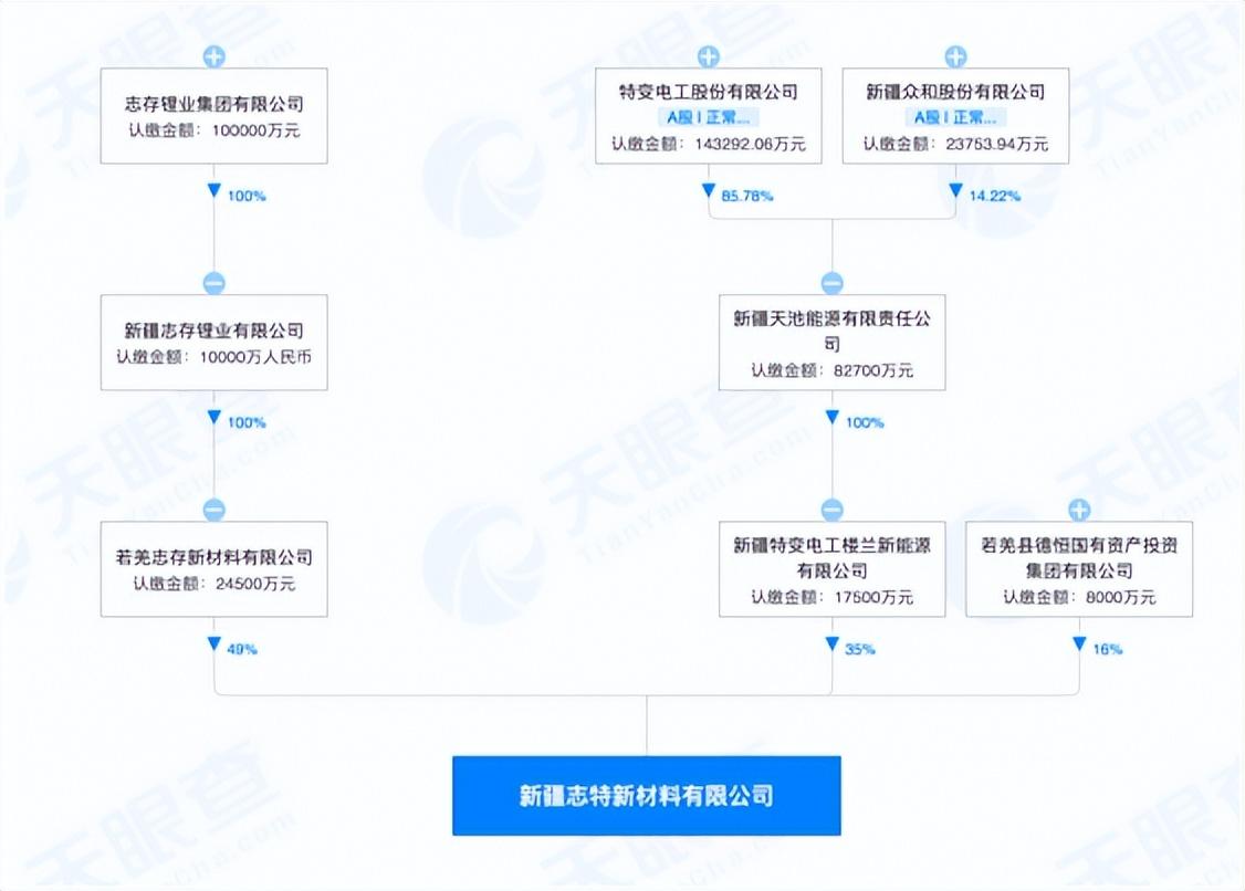 據(jù)天眼查顯示,新疆志特新材料有限公司成立于2022年11月7日,若羌志存新材料有限公司持股49%,新疆特變電工樓蘭新能源有限公司持股35%,若羌縣德恒國有資產(chǎn)投資集團有限公司持股16%。