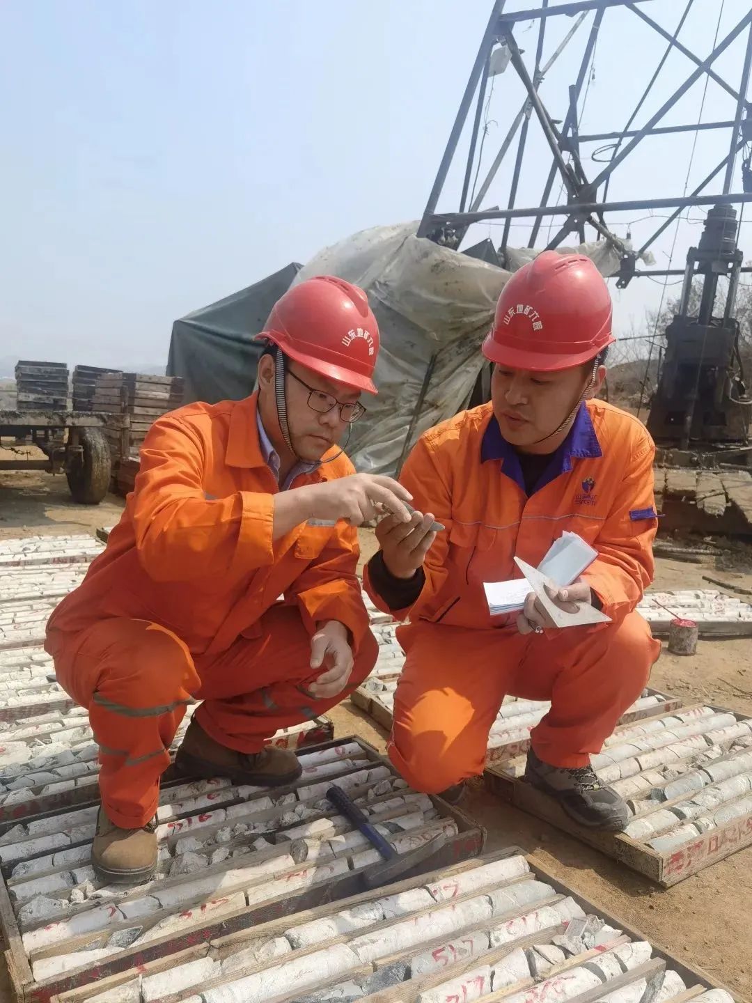 山東地礦六隊地質(zhì)人員查看鉆取的金礦巖心