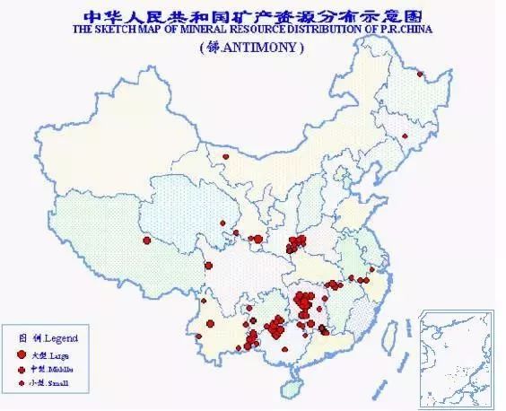 中國是世界上銻礦資源最為豐富的國家??偙S袃α夸R278萬噸,居世界第1位。已探明儲量的礦區(qū)有111處,分布于全國18個?。▍^(qū)),以廣西銻儲量為最多,約占全國的41.3%;其次為湖南、云南、貴州、甘肅、廣東等省。