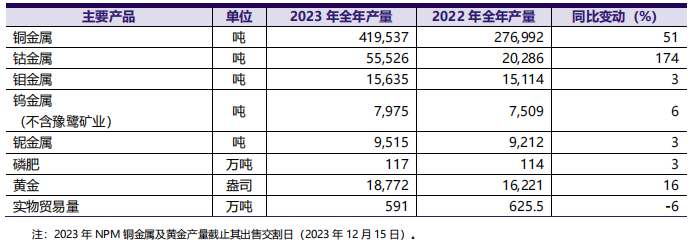 洛陽鉬業(yè)年報披露,公司去年所有產(chǎn)品產(chǎn)量全部實現(xiàn)同比增長,銅、鈷、鈮、磷創(chuàng)歷史新高。具體來看,公司實現(xiàn)產(chǎn)銅產(chǎn)量41.95萬噸,同比增長51.46%,排名中國第二,接近全球前十;鈷產(chǎn)量5.55萬噸,同比增長174.31%,成為全球第一大鈷生產(chǎn)商。中國區(qū)鉬、鎢產(chǎn)量為15,635噸和7,975噸,全球保持領(lǐng)先地位。巴西鈮和磷肥產(chǎn)量為9,515噸和116.82萬噸,創(chuàng)歷史新高。澳大利亞NPM銅、金產(chǎn)量分別為25,550噸和18,772盎司。