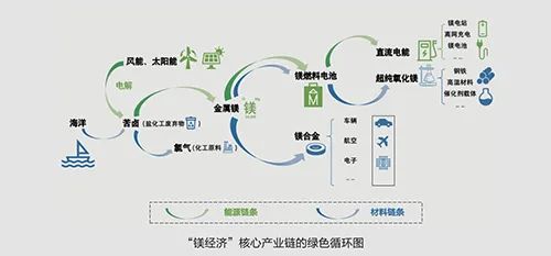 “鎂經(jīng)濟”是新能源與新材料相融合的綠色循環(huán)經(jīng)濟。“鎂經(jīng)濟”綠色循環(huán)產(chǎn)業(yè)鏈的源頭,從原料講是取之不盡的海鹵水,從能源講是用之不竭的可再生能源。利用鎂既是工業(yè)材料又是能源載體的雙重屬性,“鎂經(jīng)濟”可同時實現(xiàn)新能源和新材料兩大產(chǎn)業(yè)的綠色循環(huán)、優(yōu)勢整合:既解決了風(fēng)光電的儲能難題,又將無法處理的鹽化工行業(yè)廢棄物苦鹵“變廢為寶”,變成可帶動國民經(jīng)濟眾多領(lǐng)域?qū)崿F(xiàn)產(chǎn)業(yè)升級的重要基礎(chǔ)材料。