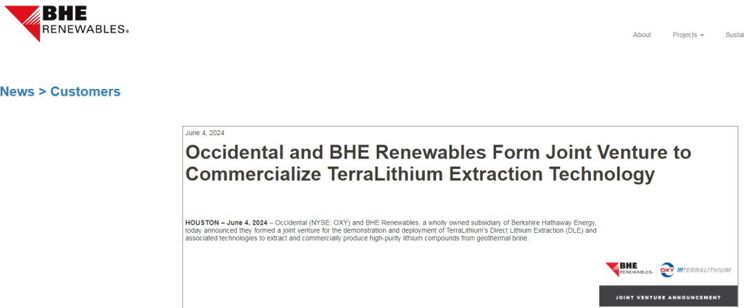 美東時(shí)間4日,巴菲特重倉(cāng)持股的西方石油公司與巴菲特旗下的伯克希爾哈撒韋能源公司(BHE)宣布成立一家合資企業(yè),用于部署TerraLithium的直接鋰提?。―LE)技術(shù)及相關(guān)技術(shù),以從地?zé)猁u水中提取和商業(yè)化生產(chǎn)高純度鋰化合物。