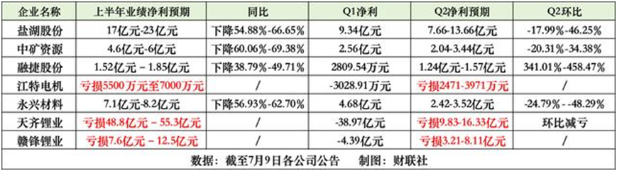 7月10日,另一鋰業(yè)“龍頭”贛鋒鋰業(yè)發(fā)布公告,預計上半年凈利虧損7.6億元–12.5億元,上年同期盈利58.5億元。