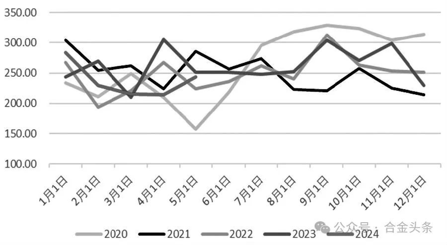 圖為硅錳月度產(chǎn)量(單位:萬(wàn)噸)
