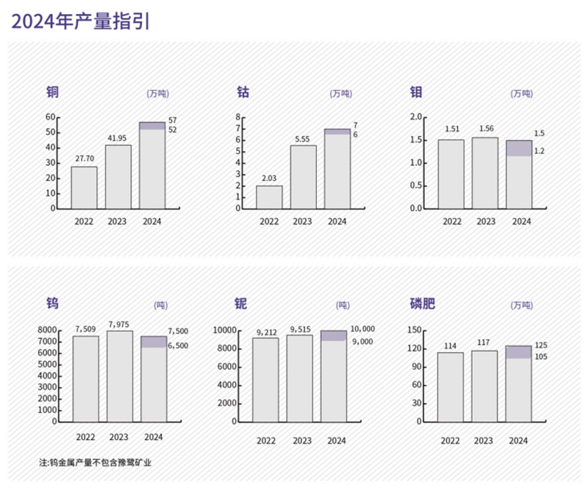 產量方面,隨著KFM項目和TFM項目均如期投產,洛陽鉬業(yè)銅、鈷產品進入“收獲期”。