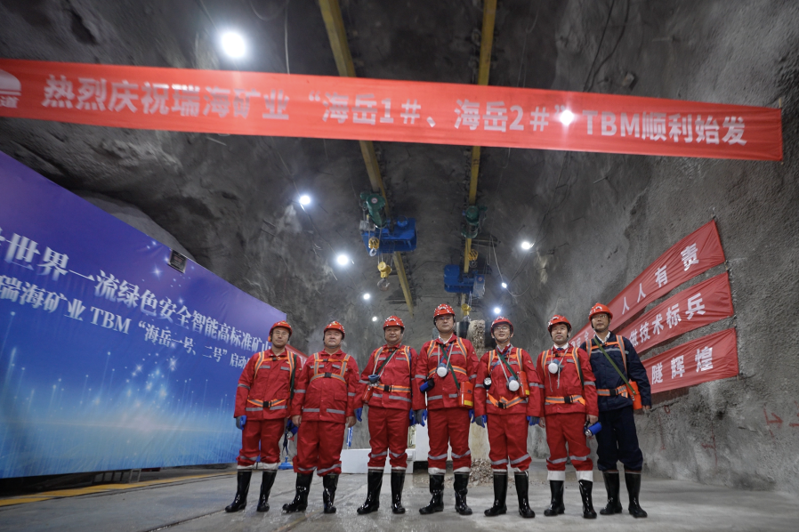 瑞海礦業(yè)“海岳一號、海岳二號”兩臺TBM是全球黃金礦山地下千米深度巷道掘進(jìn)的首創(chuàng)應(yīng)用,此項工藝不僅協(xié)助克服海域礦山工程施工中高溫、高濕、高壓等世界級行業(yè)性難題,并且填補(bǔ)了國內(nèi)大深埋金屬礦山TBM采掘工程技術(shù)的空白,是黃金礦業(yè)發(fā)展的重要里程碑事件,將助推黃金礦山采掘施工加速邁向自動化、智能化和無人化時代。