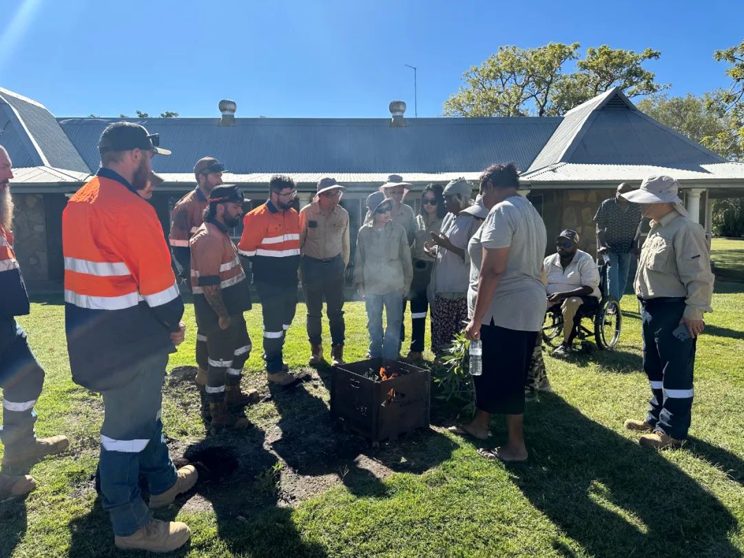 開鉆期間,當(dāng)?shù)毓拍岚驳贤林M織舉辦了莊嚴(yán)的傳統(tǒng)儀式和土著文化培訓(xùn),對(duì)中方人員的到來表示熱烈歡迎。項(xiàng)目組全體成員、子午線礦業(yè)有限公司董事Gina、鉆探公司代表等受邀參加歡迎儀式。土著長老Helen女士發(fā)表講話,對(duì)西色國際多年來尊重、保護(hù)當(dāng)?shù)卦∶裎幕z產(chǎn)的舉措表示感謝,將繼續(xù)友好支持公司在該區(qū)的勘查活動(dòng)。