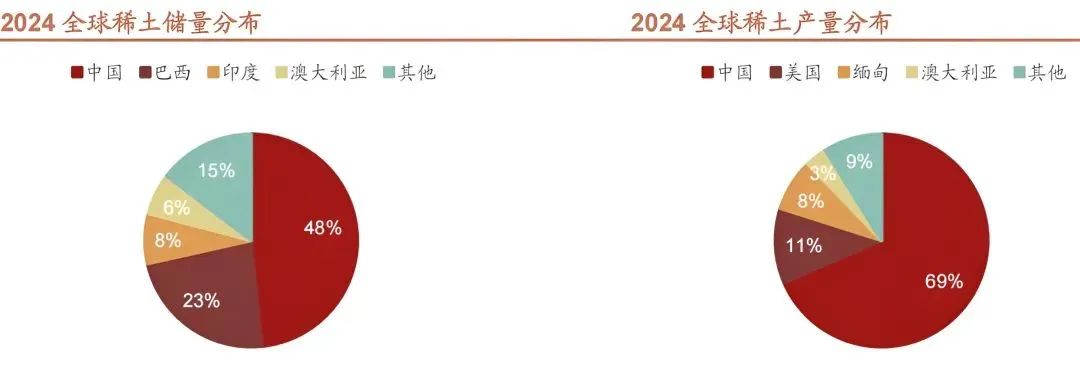 一是儲量豐富。美國地質調查局數據顯示,2024年中國稀土儲量達4400萬噸,占全球近49%的儲量。當年產量27萬噸,占全球的69.2%。
