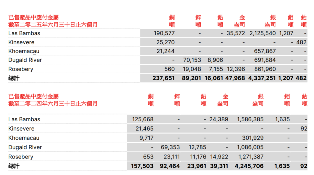科馬考Khoemacau銅礦位于非洲南部卡拉哈里銅礦帶,保有銅資源量超640萬噸,銀資源量63億盎司。2021年投產(chǎn),設(shè)計年產(chǎn)銅6萬噸,銀160萬盎司。2024年3月被五礦資源收購。今年上半年該礦銅產(chǎn)量為2.12萬噸,同比增長121%,主要原因為今年生產(chǎn)天數(shù)長并且第二季度采礦量增加,2025年Khoemacau銅指導產(chǎn)量在4.3至5.3萬噸之間。
