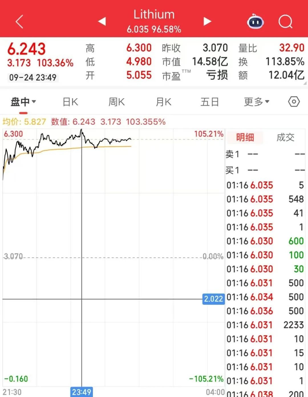 截至今晨收盤,美洲鋰業(yè)股價上漲95.6%。